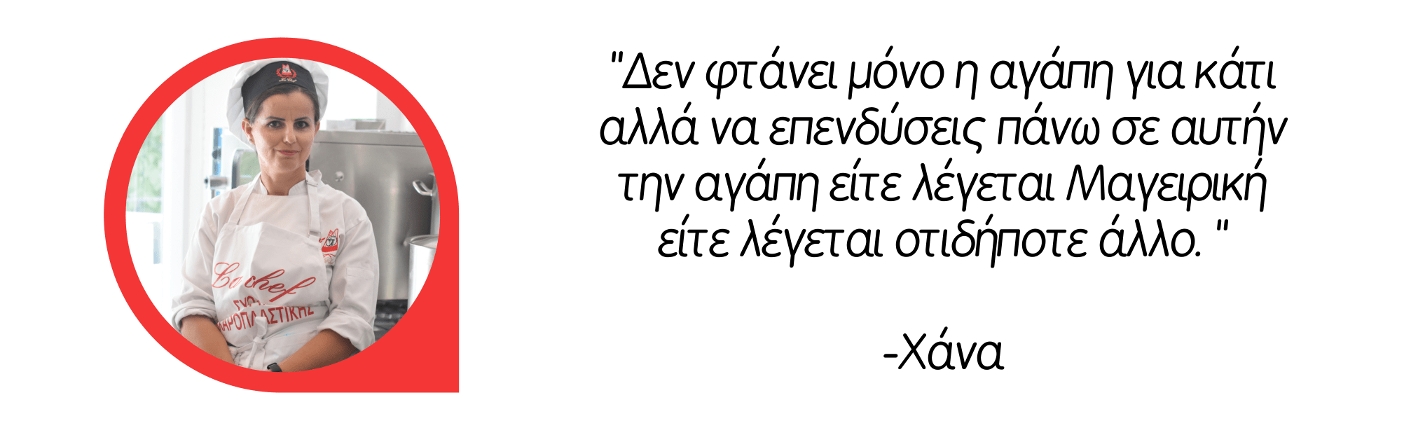 Ο λόγος για τη Χάνα, μητέρα δύο παιδιών από την Αλβανία, η οποία εμπιστεύθηκε τη La Chef Levi για να ξεκινήσει τη πορεία της στο κλάδο της Μαγειρικής.