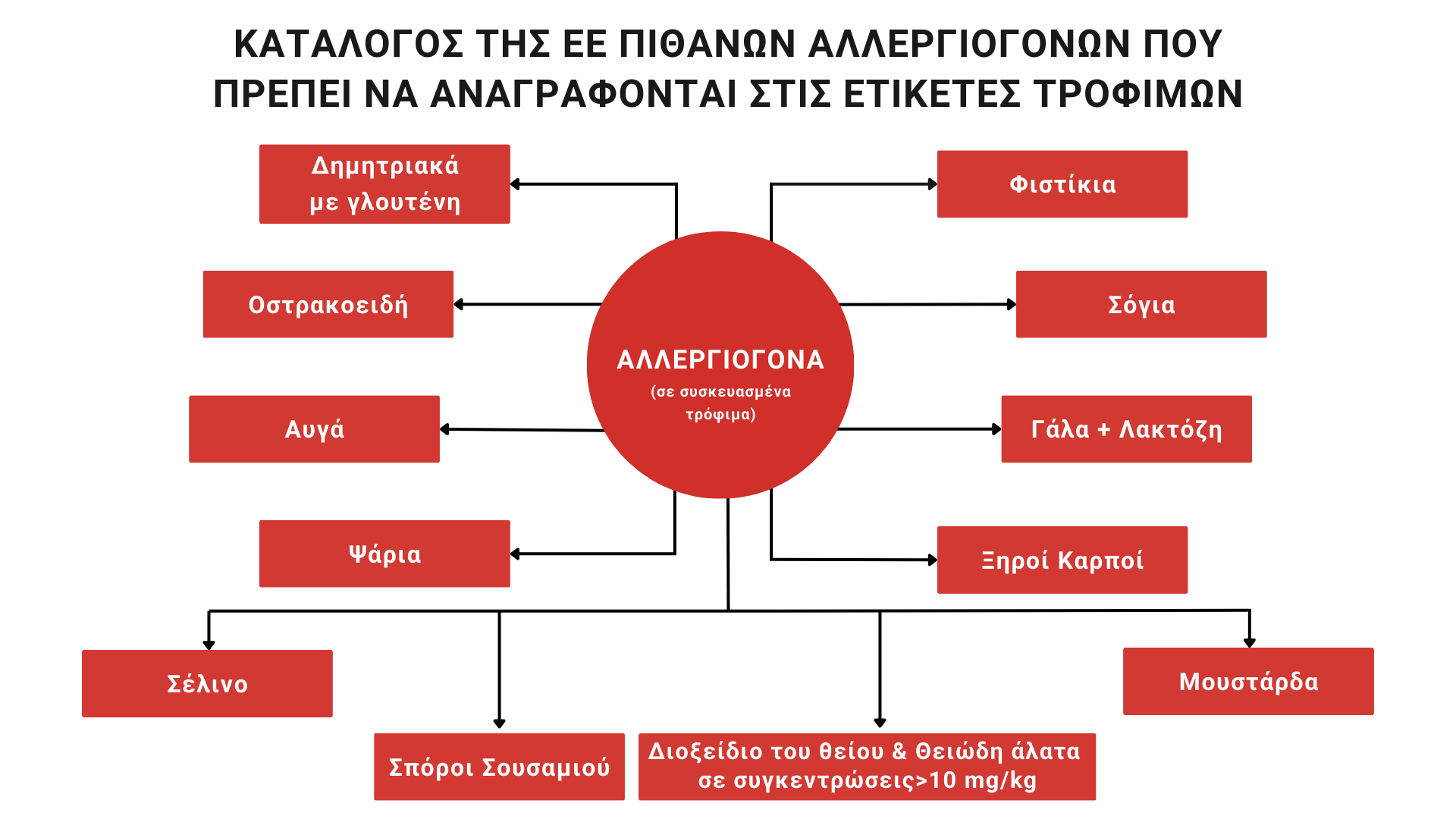 Τα πιθανά αλλεργιογόνα που πρέπει να αναγράφονται στις ετικέτες των τροφίμων σύμφωνα με την ΕΕ: